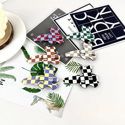 แฟชั่นเกาหลีกระดานหมากรุกคลิป BB คลิปโลหะสไตล์เรียบง่าย