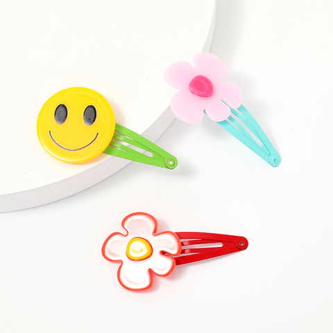 กิ๊บติดผมรูปหัวใจน่ารักสำหรับผู้หญิงกิ๊บติดผมสีลูกกวาดดินโพลิเมอร์ดีไซน์รูปดอกไม้ยิ้ม